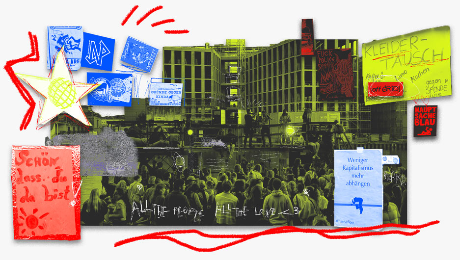 Seit August 2022 schwimmt das HansaFloß im Kanal und bietet Bühne, Veranstaltungsraum, Ort der Begegnung für Weiterbildung, Diskussion und politischen Aktivismus. Der schwimmende Treffpunkt ist Raum für politische Utopien und soll Gegenpol zur kommerziellen und konsumorientierten Gestaltung des Hafens bilden und damit genau die Art von Ort, die wir mit off the grid präsentieren wollen.